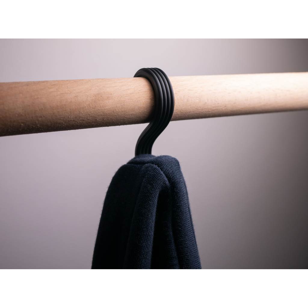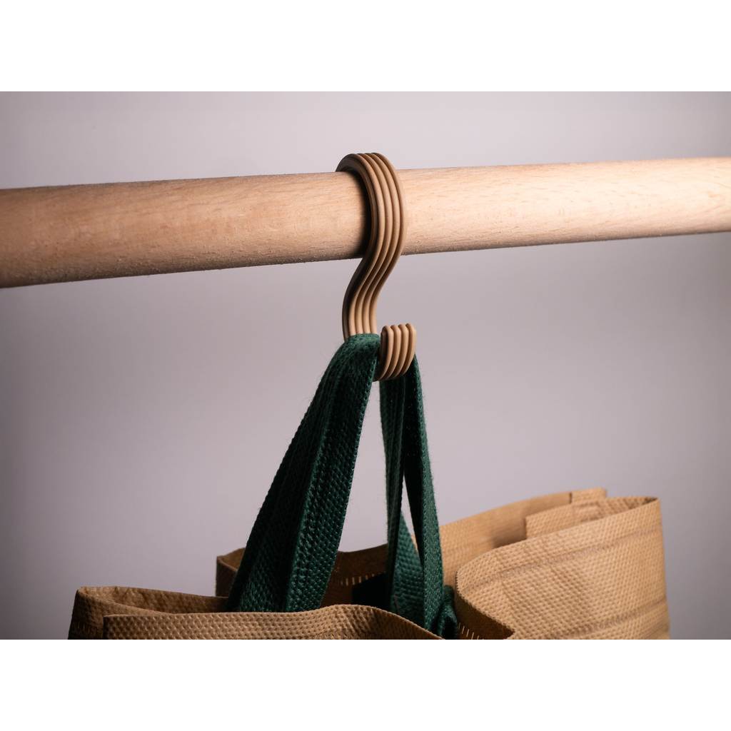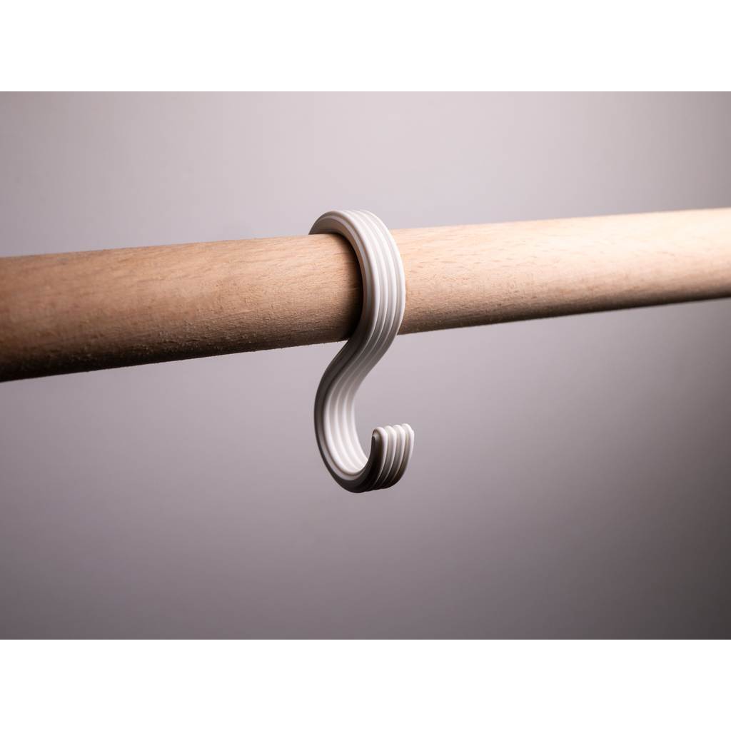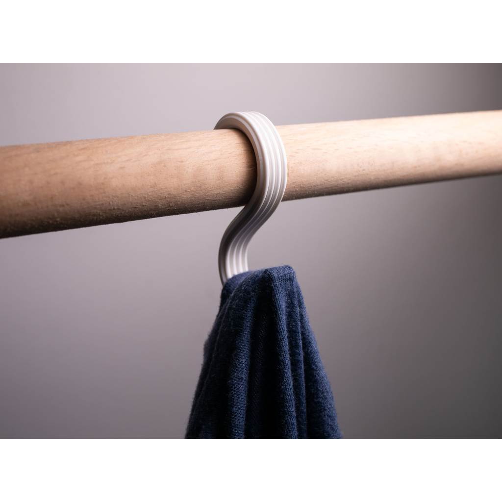 Gancho em formato “S” desenvolvido para encaixe em barras, cabideiros ou varões, ideal para organizar bolsas, sacolas, mochilas, acessórios, roupas e diversos itens do dia a dia. Seu design funcional permite pendurar objetos com facilidade, sem necessidade de furos ou ferramentas.